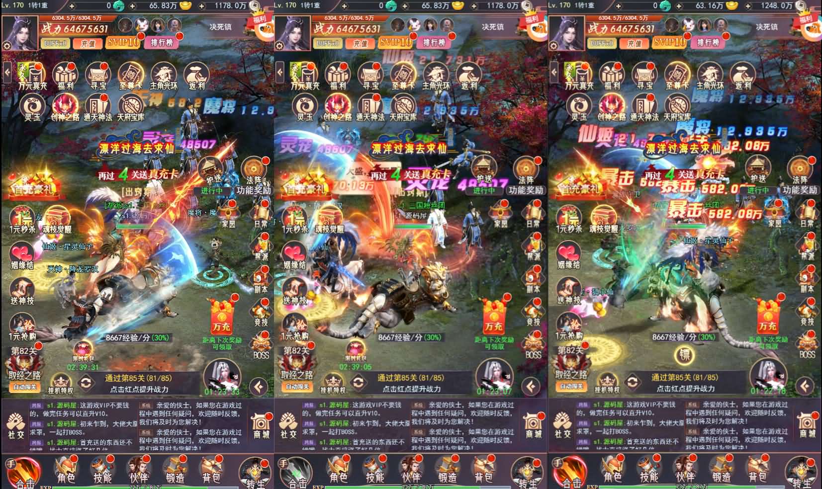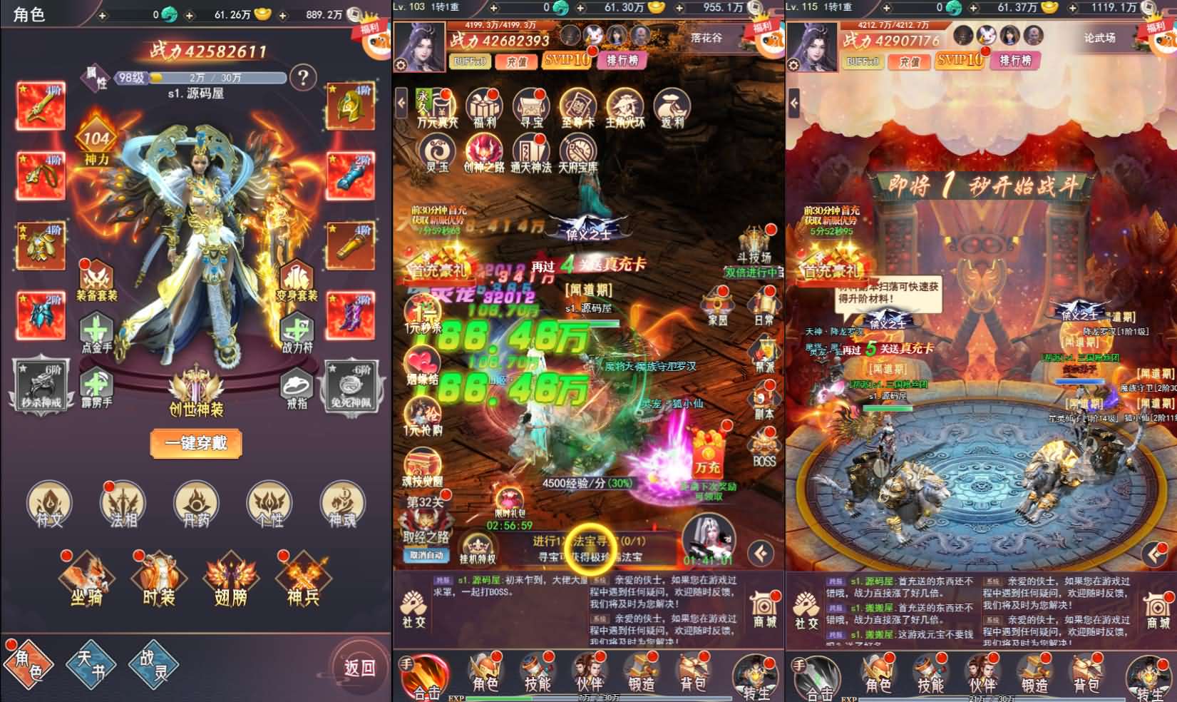 版本介绍: 1.更新英雄等级至99999 2.更新兽灵培养等级提升至1000级 3.更新兽灵嬉戏等级提升至100级 4.更新全新四神套装 5.更新装备进阶等级提...