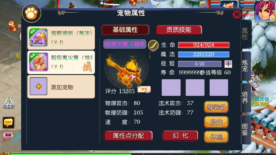 版本介绍: 1.更新英雄等级至99999 2.更新兽灵培养等级提升至1000级 3.更新兽灵嬉戏等级提升至100级 4.更新全新四神套装 5.更新装备进阶等级提...