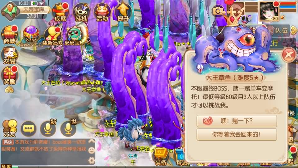 1、修复爆率丹生效 2、修复后台可以发送7.8阶神器 3、修复7.8阶和天策10/20礼包生效 4、修复真渡劫每次失败掉等级1级 5、修复渡劫地图等级限制 6、...
